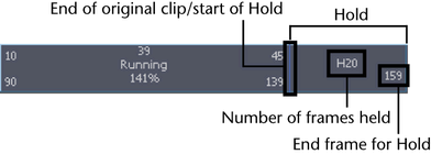 Shift-drag the upper corner of clips to create holds after the original clip. You can also create and edit holds for a clip from the Attribute Editor. See Hold clips or Hold geometry cache clips.