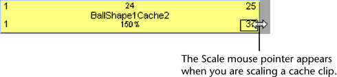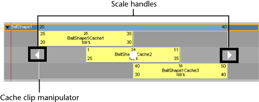 - Drag the scale handles to the left or right to scale all the selected cache clips at the same time.
