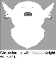 For example, you can flood your target object with a weight Value of 0 for the selected wire deformer and then paint its weights to create the desired eyebrow deformations for your character.
