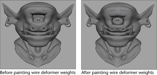 - Paint your wire weights. Painting wire deformer weights is just like painting smooth skin weights. See Painting smooth skin point weights in the Character Setup guide.