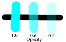 Set the fraction of the Color value to apply to each brush stamp within a stroke. Values build up when stamps overlap. Stamps overlap when you paint over the same area. Using the Opacity setting, you can produce more gradual changes to achieve more subtle effects. When you set Opacity to 0, your brush stroke has no effect. Opacity has no effect on Paint Effects brushes.