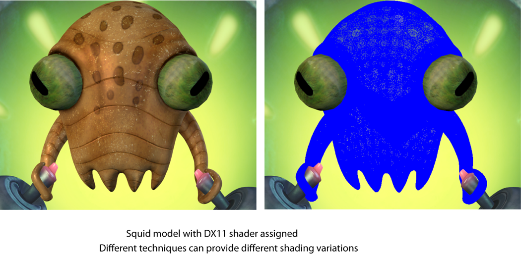 A single effect can specify one or more techniques to provide different shading variations. Maya exposes the available techniques in a drop-down list in the Attribute Editor.