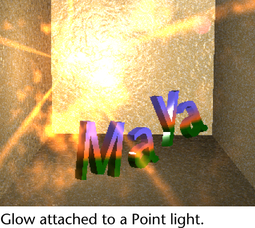 When you click the map button beside Light Glow, Maya creates an optical FX node and connects it to the light (a glow, halo, or lens flare). An optical FX icon attached to the light icon appears in the views. See Optical FX Attributes for details about setting these attributes.