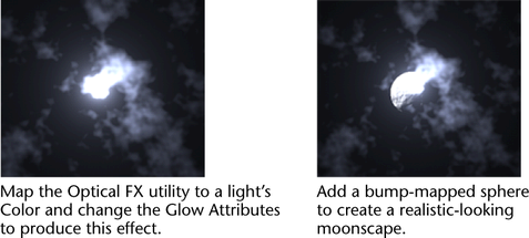 The following example shows how you can create a moody night sky simply by adjusting a few Glow Attributes. The Optical FX attributes used in this example are as follows: