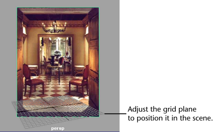 - Adjust the perspective camera so that the construction grid plane aligns approximately where you want to place the object.