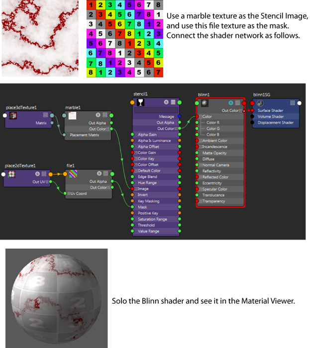 Represents the Stencil’s transparency. Use to control the overall transparency of the entire texture. To control the transparency of selected regions of the texture, map another texture to Mask.