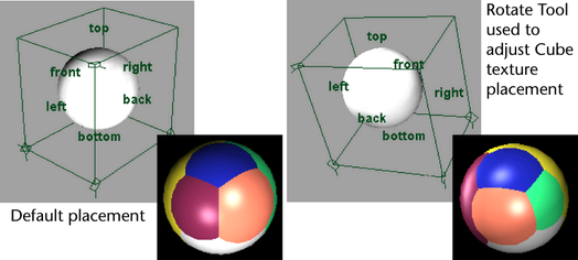 Reflections of the Env Cube are rendered as if the six images in the texture were mapped directly onto the six faces of the placement box.