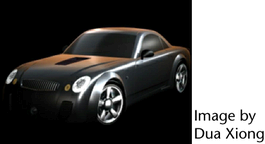 The next image was produced using the studioClearCoat plug-in. Notice how the hood and top of the car are more reflective than the front and sides of the car.