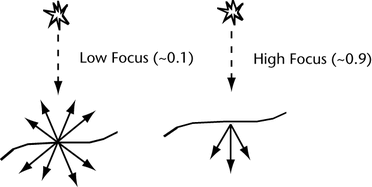 Use a low focus value for thicker objects, such as wax. To compensate for the added light and avoid a washed out result, lower the diffuse value, or lower the overall color (which also affects ambient lighting).
