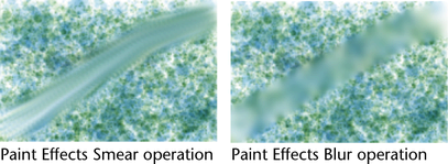 You can use the default Paint EffectsSmear or Blur brushes or select any Paint Effects brush with a Brush Type set to Smear or Blur. To select the default Smear or Blur brushes, click Reset Brushes and in the Paint Operations section, select Paint EffectsSmear or Blur, as appropriate. Use the Blur Intensity option to adjust the blur effect.