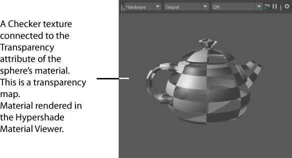 If you connect the black and white Checker texture to the transparency attribute, you have applied a transparency map; the checkered pattern determines which parts of the object are opaque and which are transparent.