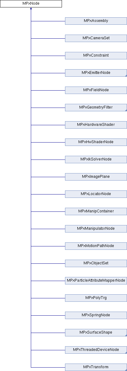 Inheritance diagram for MPxNode:Public Types | |