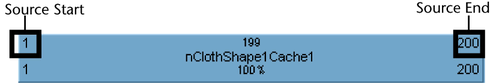 If you change your nCache clip’s Source Start value, then you are trimming frames from the beginning of your cache clip. If you change your cache clip’s Source End value, then you are trimming frames from the end of your cache clip. See Source Start/Source End. The trimmed frames are not deleted from the clip or its associated file on disk. You can reinstate the trimmed frames by restoring the cache clip’s original length.