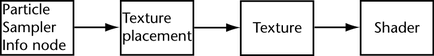The Particle Sampler Info node provides particle shape attributes to either a particle shader, texture, or texture placement node for use in software rendering.