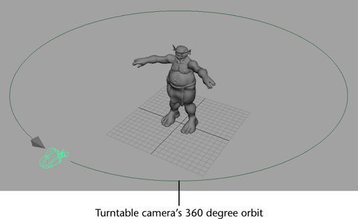 A camera named turnTableCamera1 is created, and your current view becomes the view of the new turntable camera.