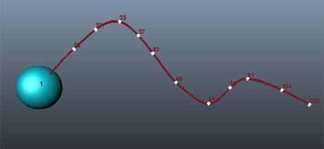 Sets the frequency at which the motion trail line is sampled and drawn, essentially specifying the resolution of the motion trail line. The default is 1, so the motion trail is sampled at every frame. Setting the Increment to 5, for example, samples and draws a motion trail point every 5 frames. If a motion trail key falls on a sample point, it is drawn on the trail.