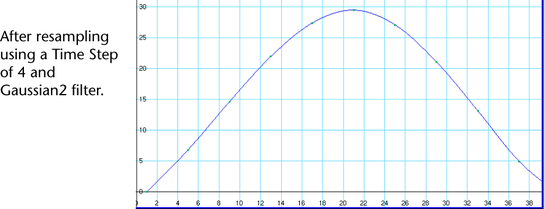 To resample a curve, you select a sampling filter, which is an algorithm defining how the keys in the curve are resampled. Tangent and curve values are ignored. The filter converts animation curves with keys at either uniform or non-uniform intervals to curves with keys at a uniform interval that you specify.