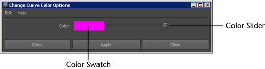 Clicking on the Color Swatch launches the Maya Color Chooser. The Maya Color Chooser lets you select a new custom color for your curves.
