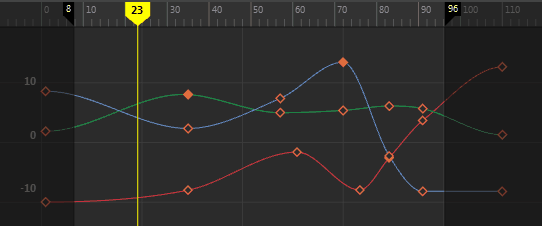 A graphical representation of interpolation between animation keys that you can modify.