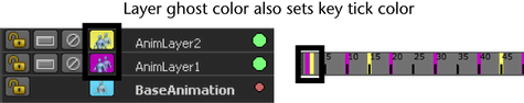 Ghosts for layered animation let you preview the position of an object with each added layer of animation. The ghost options in the Animation Layer Editor let you show and hide ghosts for objects animated on multiple layers.