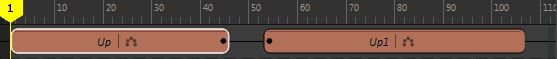 For example, this image shows an animation clip that has been split in two of an animated sphere. The second half of the clip has been moved further along the track, creating a gap between the clips: