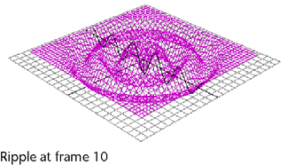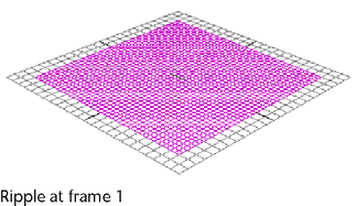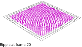 You can create ripple effects by using a wave deformer on a NURBS or polygonal surface. This example shows how you can create a simple ripple effect on a NURBS plane.