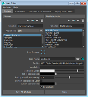 | Rename a shelf | In the Shelf Editor, Shelves section, select the shelf you want to edit and enter a new name in the Rename text box. |