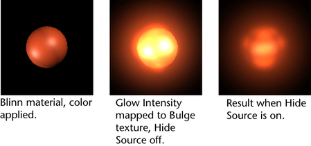 Makes the surface invisible when rendered (if the Glow Intensity value is non-zero) showing only the glow effect. Hide Source is off by default.