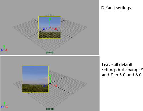 Use the Placement attributes to position an image plane relative to the camera.