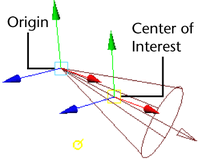 Move the two parts of the light manipulator to change the location (origin) and direction (Center Of Interest) of a light. All lights include this option.