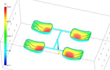 In this tutorial, you set up and run a finite element method (FEM) cooling analysis on a 4-cavity tool on the computer mouse cover. The FEM cooling analysis calculates both steady state and transient mold temperatures. Steady state is an average mold temperature. With transient, the mold temperature changes over time. In this tutorial, you run a steady state analysis.