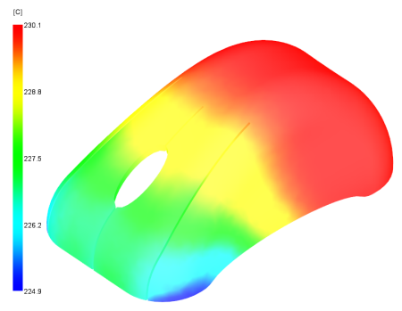 In this step, you review the Fill Time, the Pressure at V/P switchover, and the Temperature at flow front results.