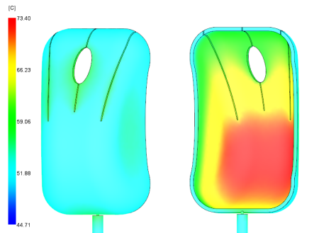 Another analysis was run with the core side coolant temperature reduced from 40C to 20C, the cavity side temperature was left at 40C. The results are outlined in Table 1