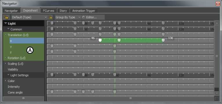 Dopesheet window A. Dopesheet Property list