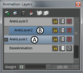Animation Layer editor A. Parent layer B. Child of AnimLayer1