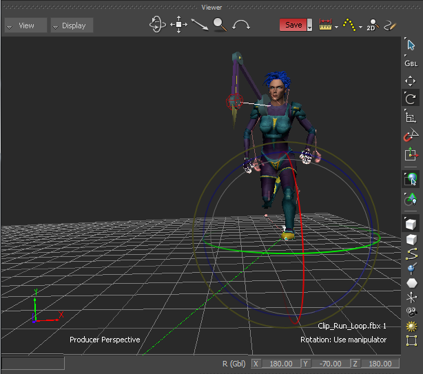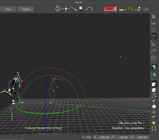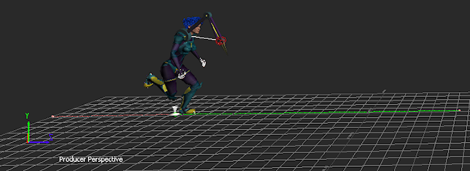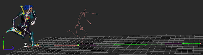 Frame 0: Character's ghost and clip ghost vectors displayed in the Viewer wiindow