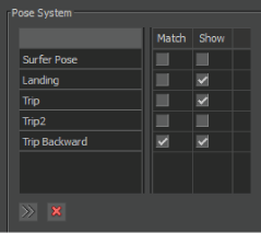 Activate the corresponding option in the Match column to select whether you want the pose to function as a Guide or a Match pose.