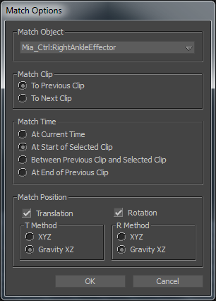 In the following procedure, you match and blend the two clips to remove the jump in the animation.