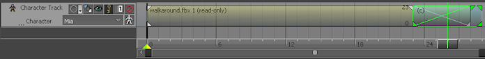 ) to scrub through the animation. Mia starts and ends her walk in the same pose.