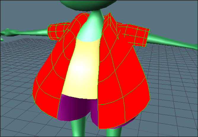 Flat shader: The jacket is drawn with no edges, and its color is changed to red using the Flat shader.