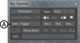 Key Controls window A. The words “Anim. Trigger” appear in the Keying Mode menu when the Animation Trigger window is open