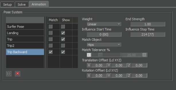 Note: You must first create poses in the Pose Controls window to use with this solve. See