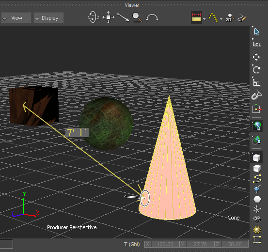The system Ruler "object" start point snaps to the surface of the object. The measuring distance displays and updates dynamically as you start to move the cursor.