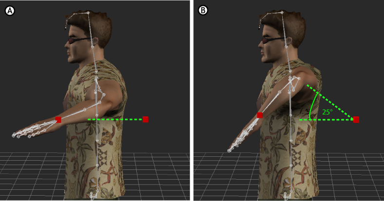 Pole Vector offset A. No offset B. Y-value offset to 25 degrees