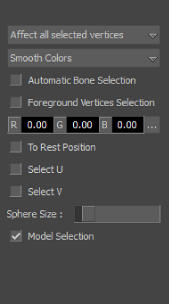 | Least Influential Bone | Draws vertices using the color of the bone for which they are least weighted. This option detects and corrects useless weights, thus optimizing the character’s performance. |