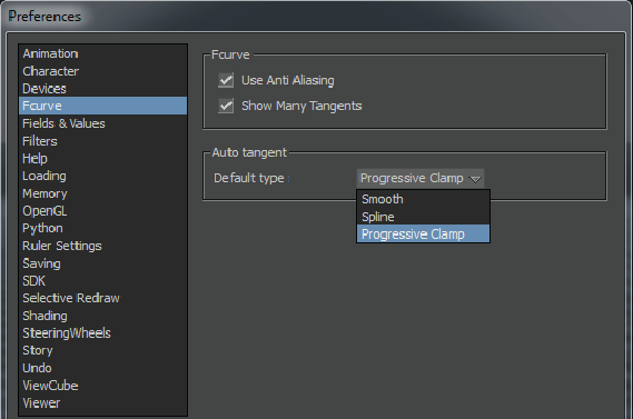 | Progressive Clamp | This is the default Auto type. As an all-encompassing Auto key type, Progressive Clamp is a combination of spline, clamp, and flat behavior. Characteristics of this key type: