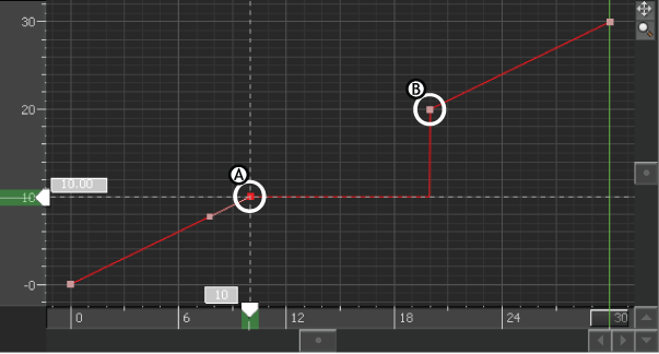 Step Next interpolation A. Selected keyframe B. Next keyframe
