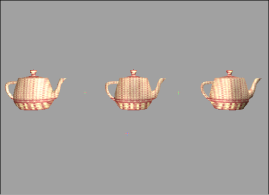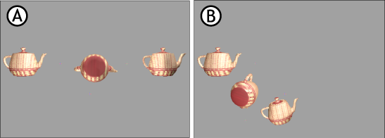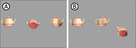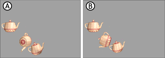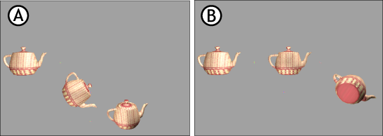 The following sections illustrate the reaction created by the collision propagation setting of each object when it is applied to three teapot models in a chain.
