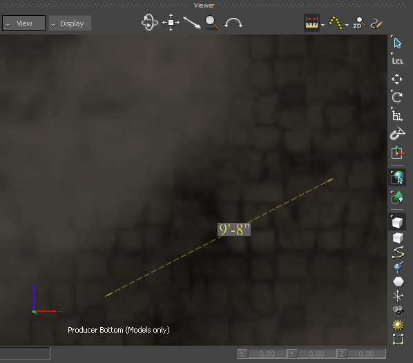 You can measure the distance between two objects in the scene using the Ruler tool. When a measured distance is displayed, it is always displayed at the current camera view, enabling you to see the measured distance when working in Orthographic view (Producer Front, Producer Back, Producer Top, Producer Right, Producer Left, Producer Top, or Producer Bottom).