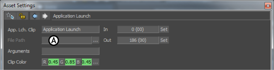 The File Path field displays in the Asset Settings window when an Application Launch command clip is selected. The File Path field lets you choose the application you want to launch when the command clip plays.